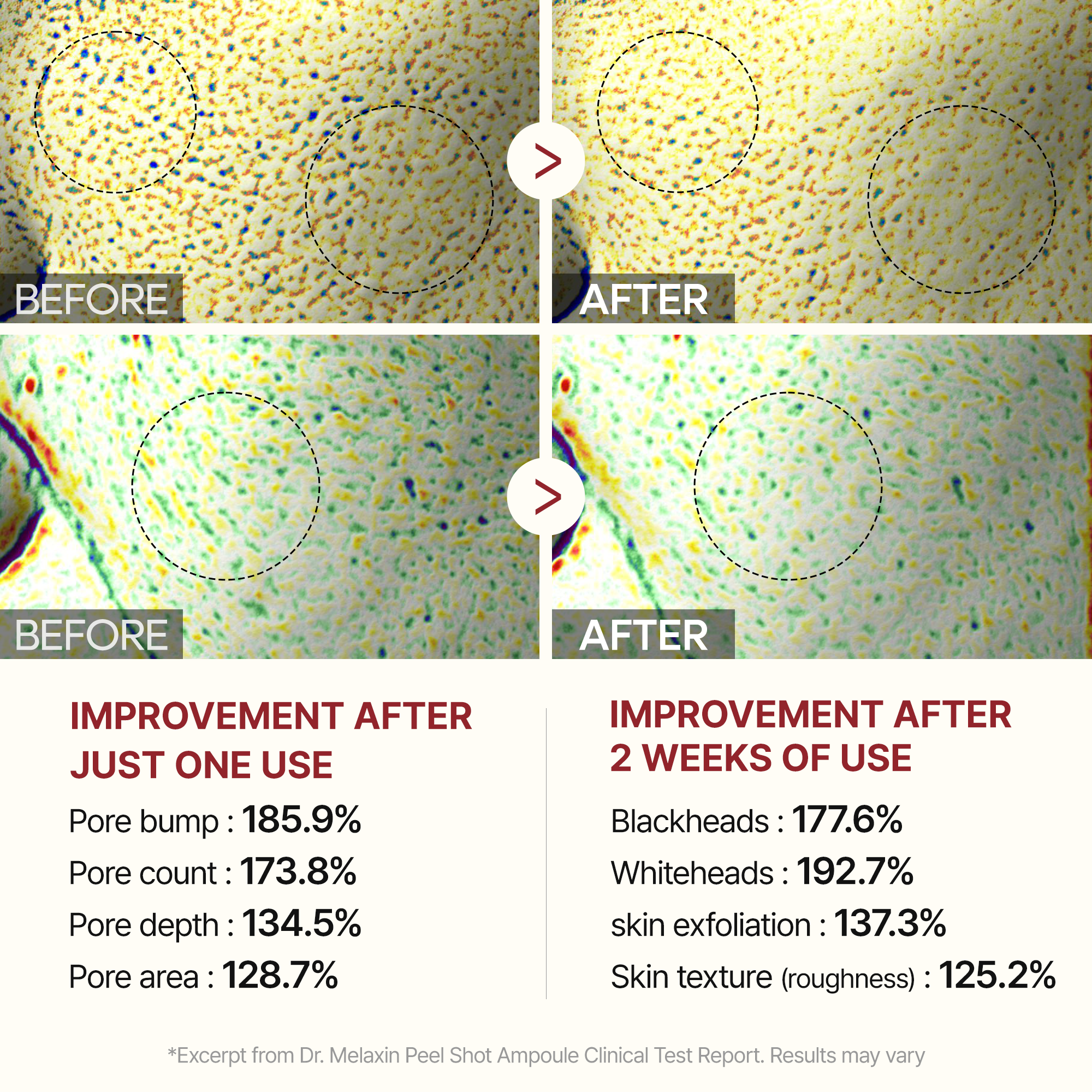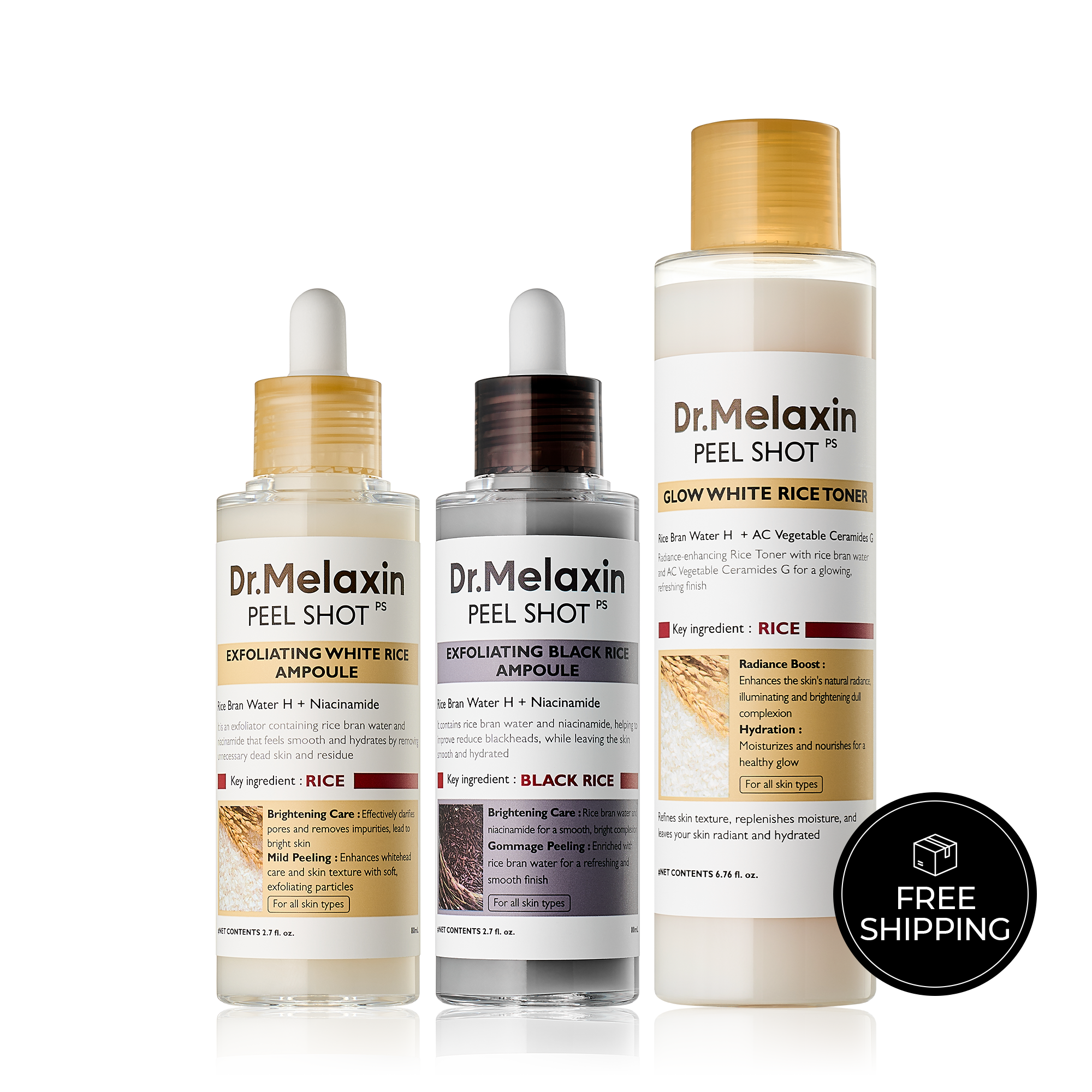 Dr. Melaxin PeelShot Rice LineDual-Action Peeling & Absorption | Smooth, Radiant Skin Instantly | Innovative Rice-Based FormulaWhat it is:Discover the innovative care of Dr. Melaxin PeelShot Rice Ampoule. Unlike traditional peeling products, this advanced formula offers both exfoliation and absorption, gently removing dead skin cells while delivering nourishing ingredients. With every use, your skin will feel smoother, brighter, and more radiant, revealing a healthier-looking complexion.
